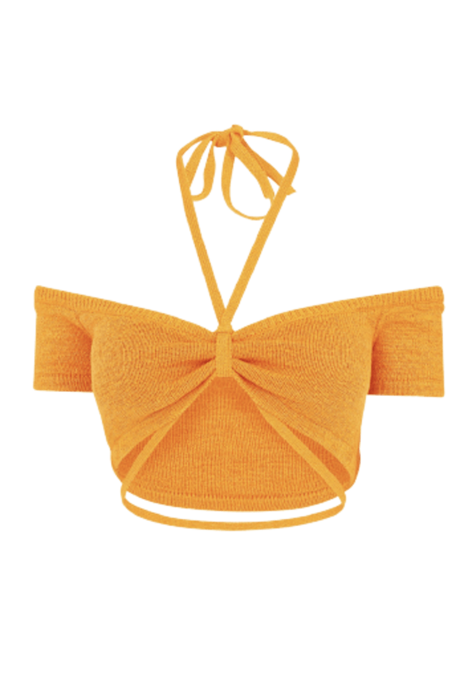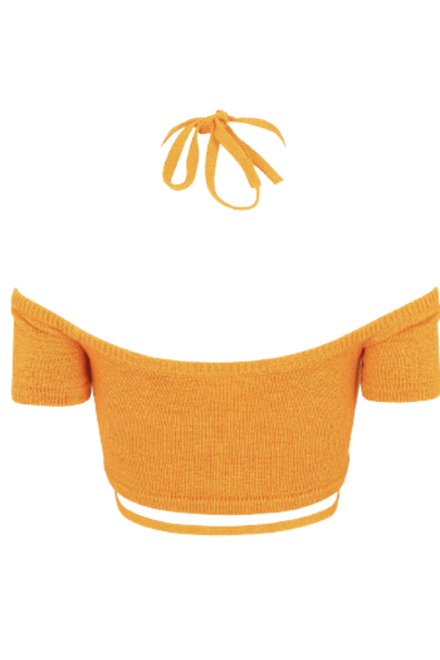 Refresh your summer knits with the Cessaly Knit Top from Cult Gaia. Designed with an off the shoulder neckline and short sleeves, this top offers a bust framing crop for a feminine and sultry silhouette. Made from a knitted cotton blend, this top is characterised by halterneck ties and a waist strap detail to define your figure. Finished in a vibrant orange, wear yours with the matching Hedda Skirt for a perfectly coordinated look.