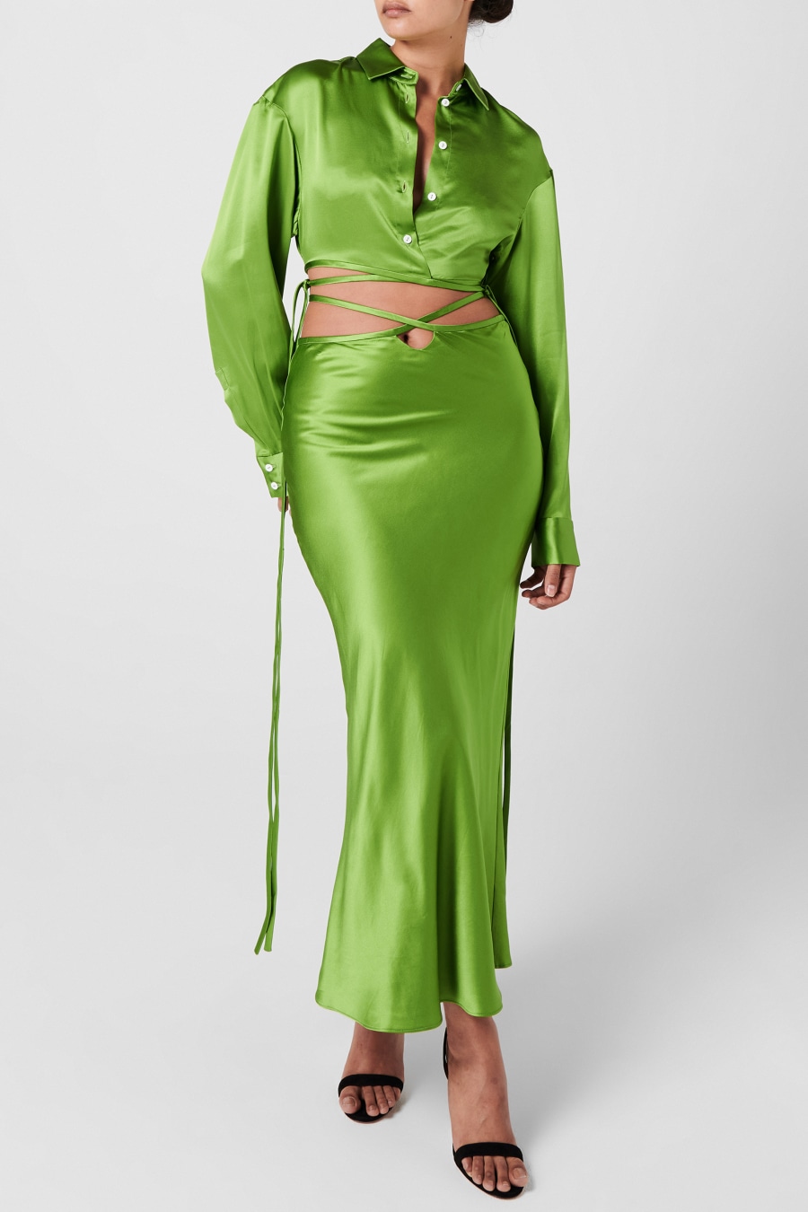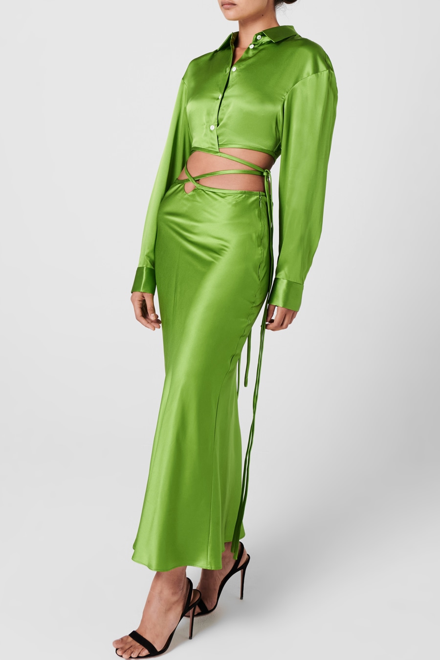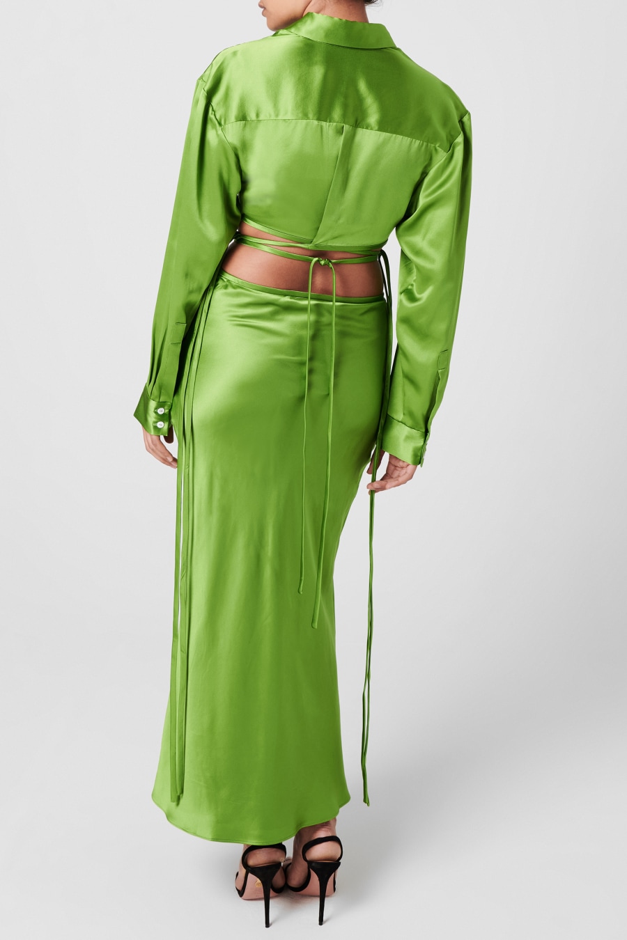 Add modern luxury to your evening garments with the Cropped Tie Shirt from christopher Esber. Crafted from a premium pure silk for a butter-soft fit, this shirt is cut with a classic point collar and button down fastening for a traditionally formal look. With button cuffs and a dropped shoulder, this shirt is characterised with adjustable ties to the waist for a contemporary silhouette which can be worn in a multitude of ways flattering your figure, this piece is perfect to style with wide leg trousers or the matching skirt and sandals for a cocktail ready look.