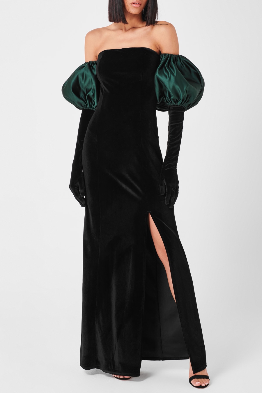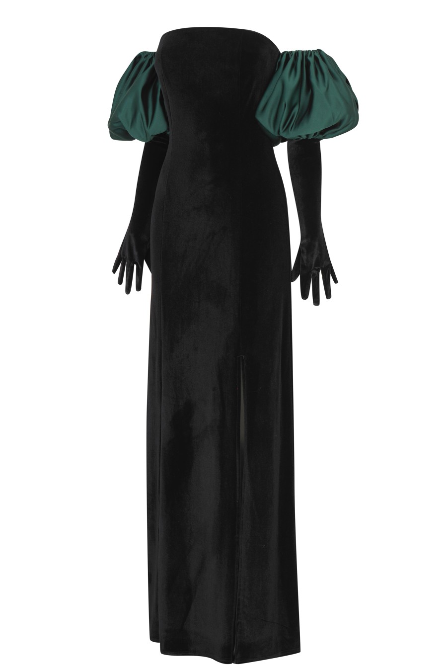 Not so stupid now Cupid? Add a must have to your occasion wardrobe with the Cupid Long Dress Set from miscreants. Offering a clean strapless neckline accentuated by princess seams and a high slit to the leg, this dress is made from a premium stretch velvet for a sophisticated silhouette. With matching long velvet gloves, this chic set is finished with emerald green satin puffs to wear alongside for a statement touch.