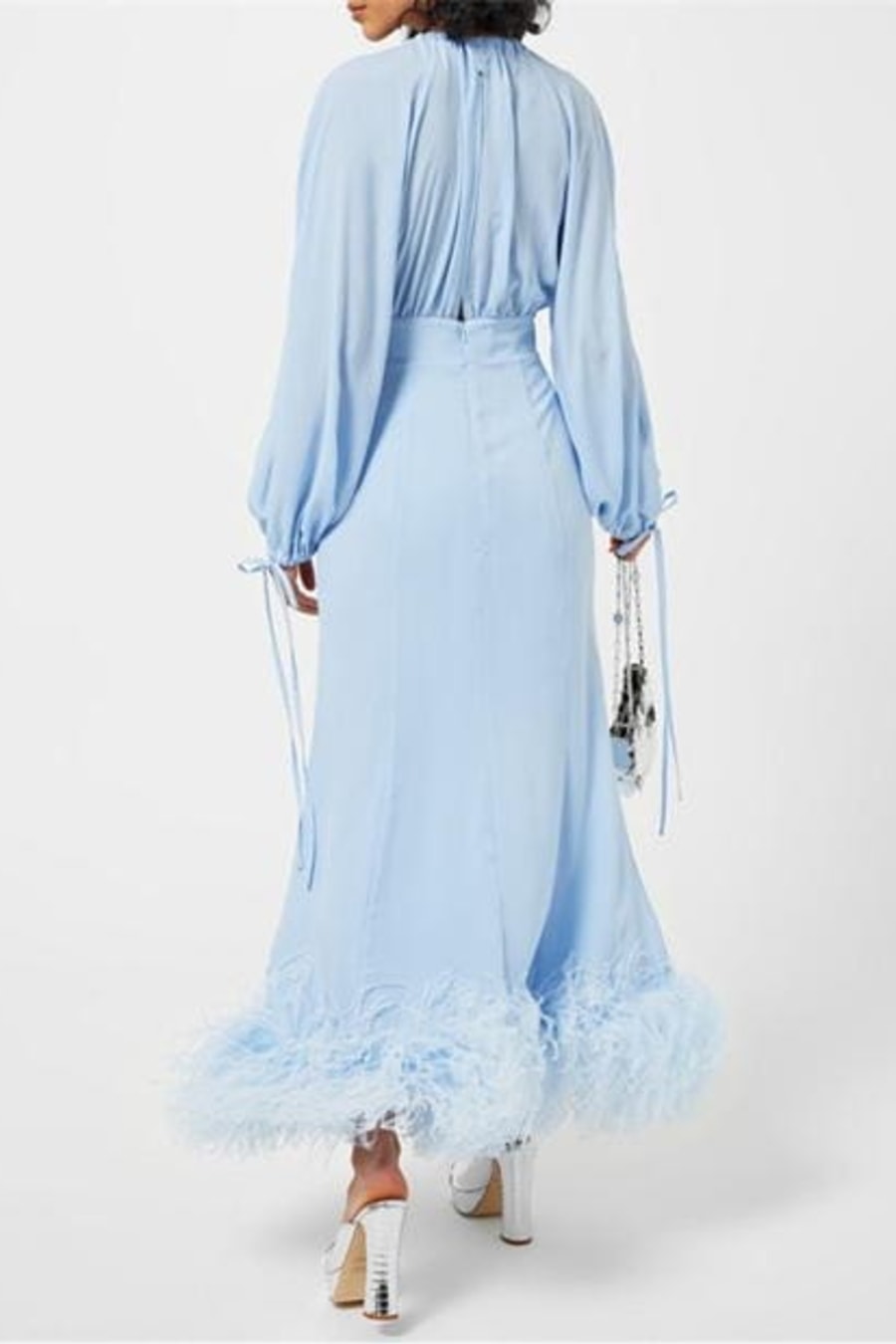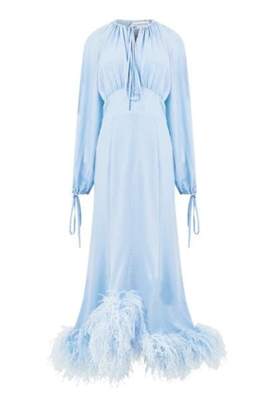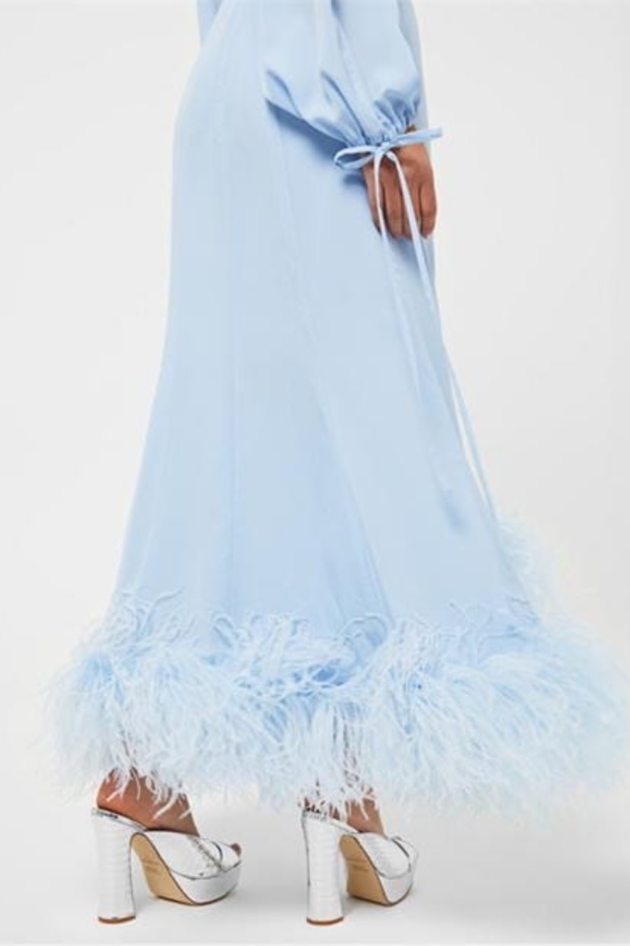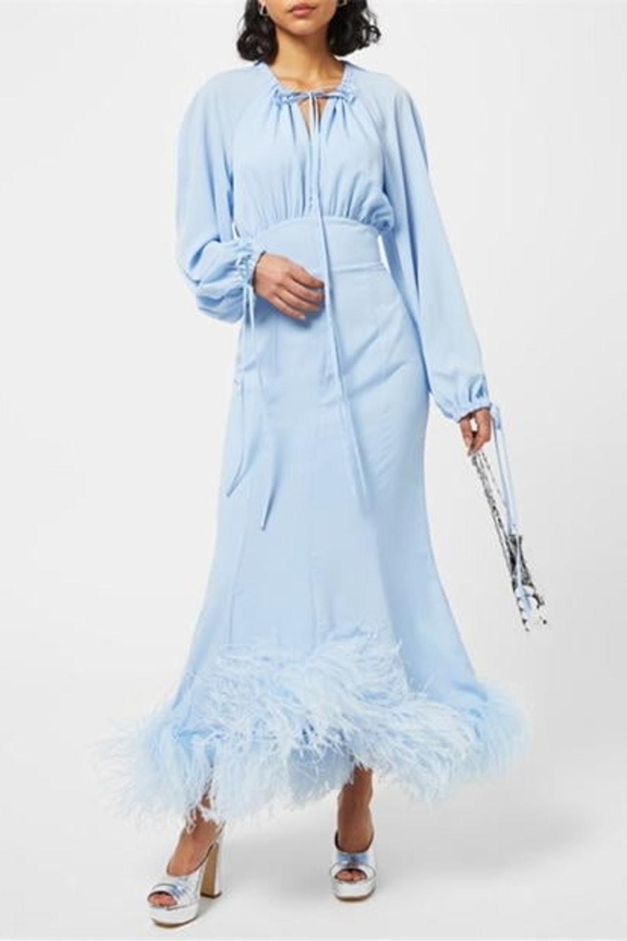 Elegant yet dramatic, the Davis dress by 16Arlington boasts an eye-catching, asymmetric fluted skirt that creates a flattering fit. Featuring the label’s signature ostrich feathers, this piece will add a touch of allure to your evening repertoire, pairing best with barely-there sandals for an instantly glamourous look.