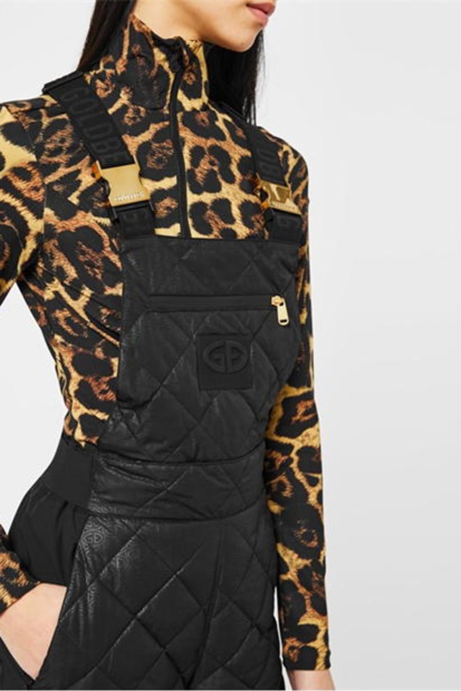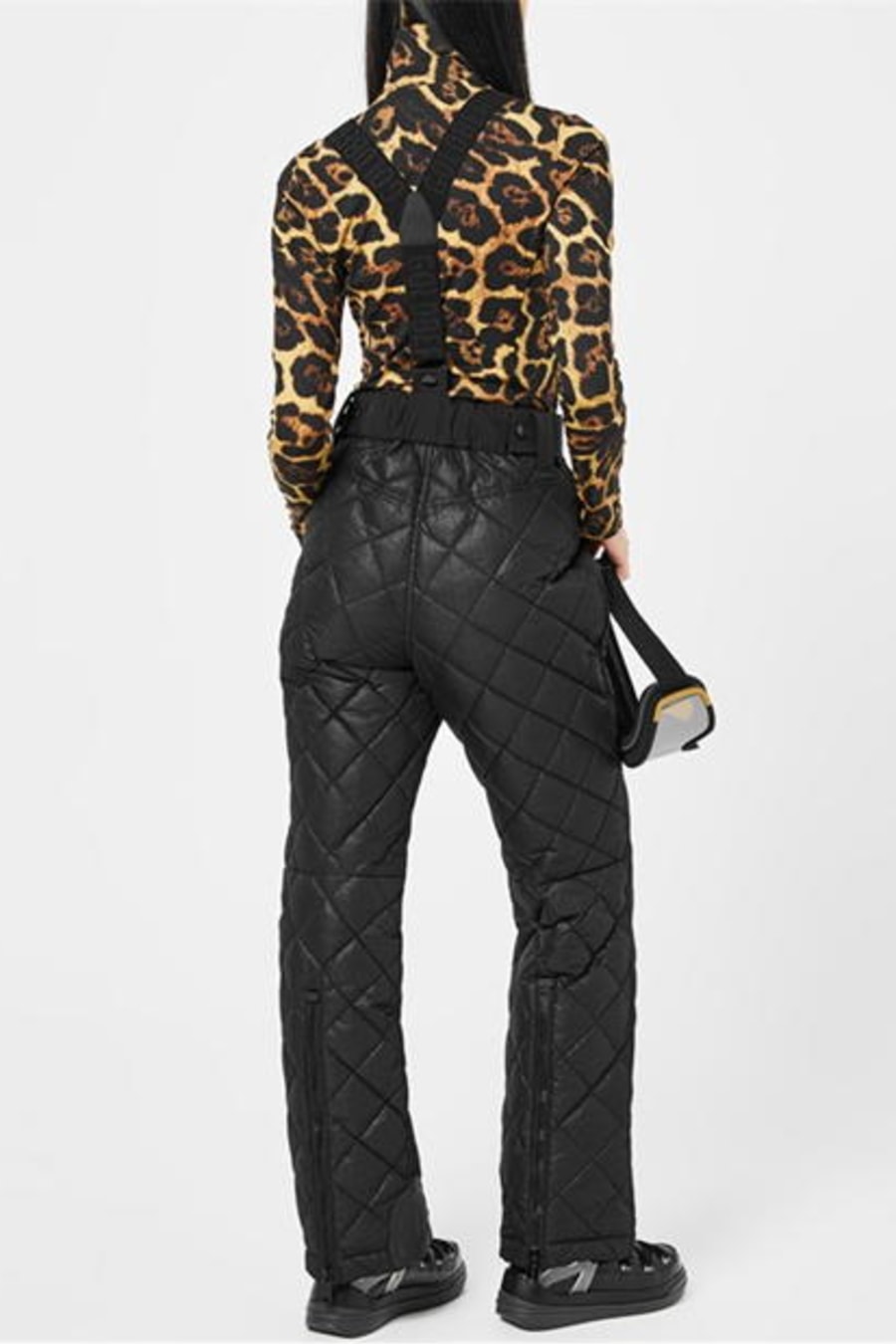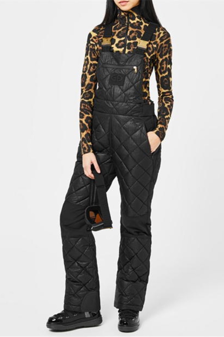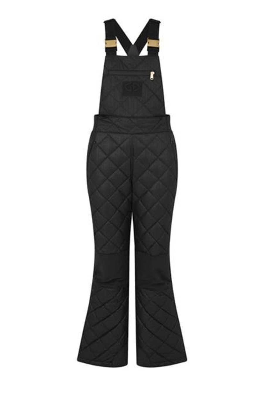 Elevate your skiwear with the Kaya Salopette from Goldbergh. Crafted in a soft polyester construction, the salopette features detachable elastic suspenders and front bib, two zipped pockets, snow catchers in each leg for added comfort and warmth, zip closures at the side and as well as on the back of the legs. Designed in a solid colour throughout, the look is completed with gold coloured buckles and detailing, a diamond quilted pattern and an all over Goldbergh logo print. Outershell 1: 100% polyester. Outershell 2: 86% recycled polyamide, 14% elastane. Filling 1: 90% duck down, 10% feathers. Filling 2: 100% polyester padding. Machine washable at 30 degrees.