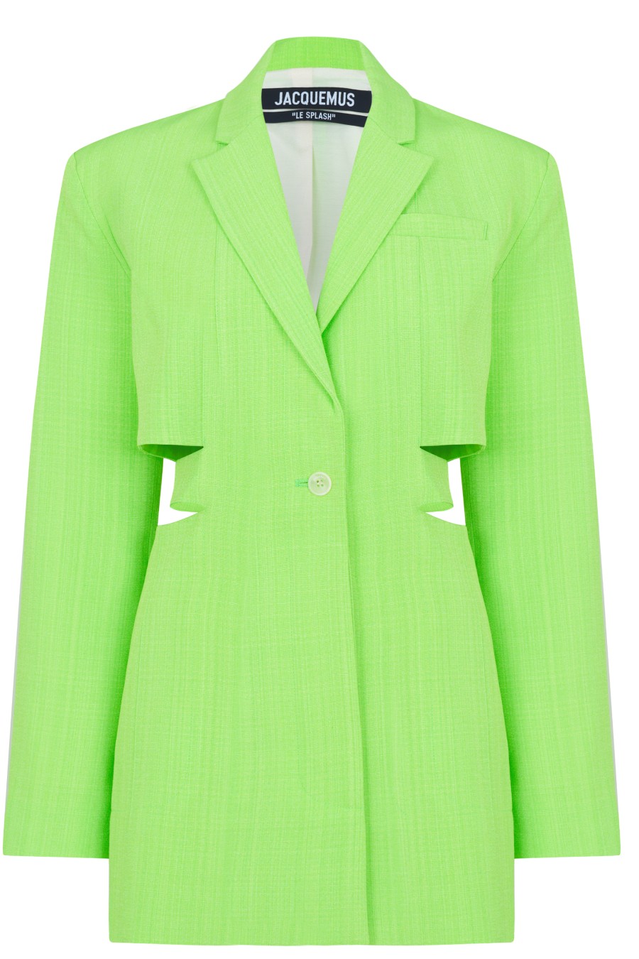 Taking classic silhouettes and making subversives shapes is a jacquemus specialty La Robe Bari is cut in asymmetrical shape with cut out detailing on a otherwise masculine shape. With hidden placket fastening and tonal stitching throughout, it elegantly shapes the figure with a deep v neckline , the dress is complete with Jacquemus branding. Pair with strappy sandals and the brands Le Sac Rond bag from it's latest collection.