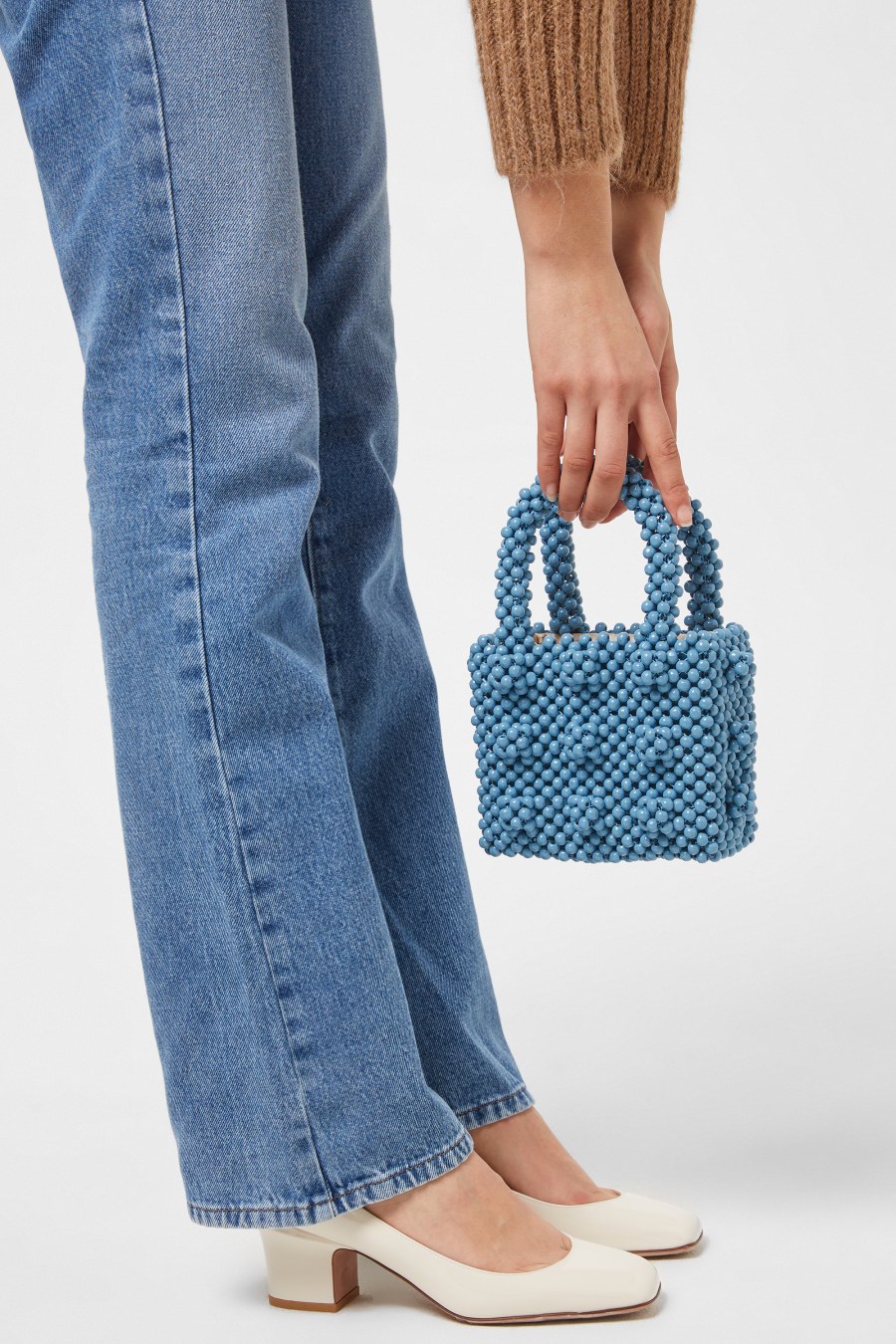 Renowned as the silhouette that started it all, the Shrimps Antonia Bag boasts a boxy style with an extravagantly feminine flare. Decorated with a beaded design styled with a grid set cluster of faux pearls adding subtle texture, this bag offers a fully jacquard lining to the main compartment and the addition of an internal pocket makes this the perfect mini for storing all your essentials. Maximised with two rounded top handles allowing you to carry hand-held, this bag is a sparkling addition to add to your accessories. Protective dust bag included. H 13cm x W 16cm x D 8cm. Beads/Pearls: 100% woods. Lining: 65% acetate 35% viscose. Wipe clean only.