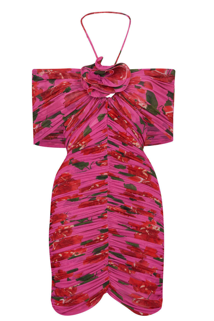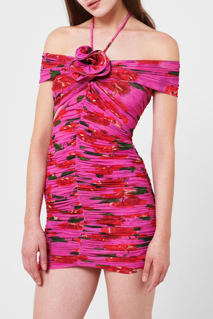 Add a feminine silhouette to your collection with the Off Shoulder Dress from Magda Butrym. Designed with an off the shoulder neckline detailed with halterneck ties, this dress is cut to a mini length for a flattering feminine style. In a semi-sheer construction with ruching down the front and rear, this dress is finished in a vibrant floral pattern with a removable rose to the bust.