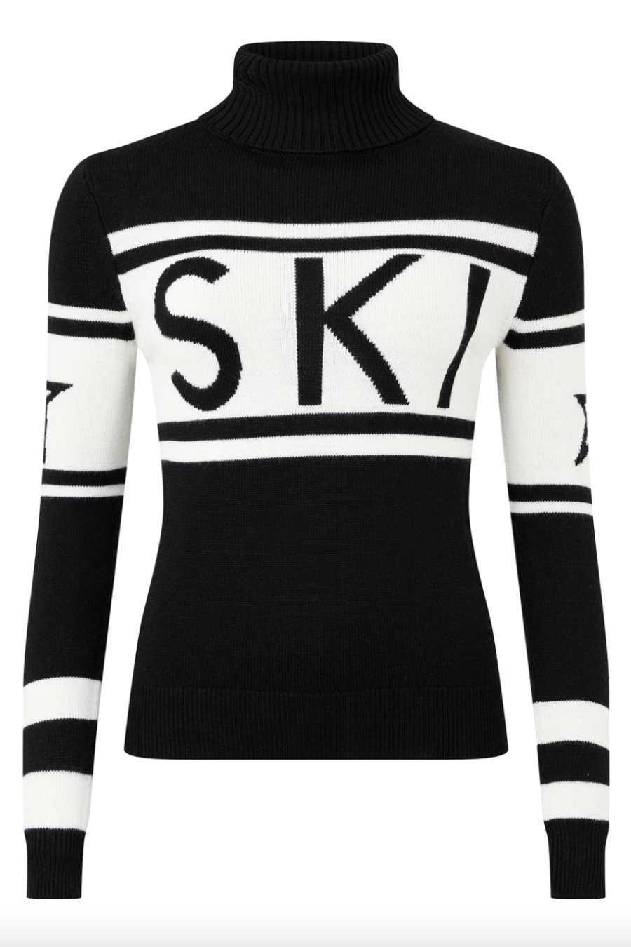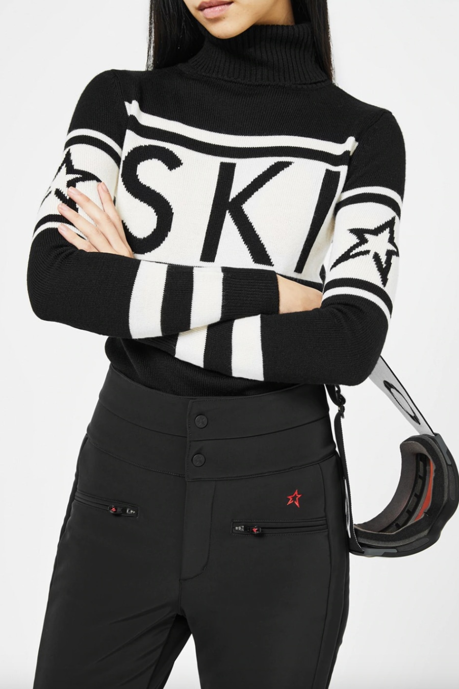 Update your skiing essentials with the Maria Ski Suit from perfect Moment. Made from a pure merino wool for a cosy feel, this jumper is cut to a slim fit to flatter your figure. Designed with a ribbed roll neck alongside ribbed trims to the sleeves and hem, this pullover is finished in a colour-block pattern with a 'SKI' slogan knitted across the chest.