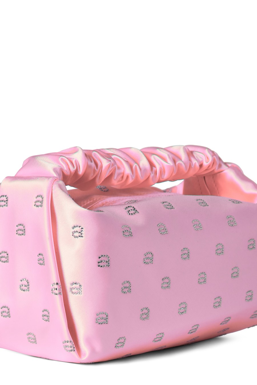 The Scrunchie Mini Bag by alexander Wang is the perfect addition for your collection. Designed in a core satin colourway, this bag is made in a small silhouette with a scrunchie-inspired top handle. Crafted with a silver zip fastening with one main compartment, this style is finished with embellished crystal A's to add a touch of glamour and designer to the piece. Match with your favourite LBD and silver jewellery for a bold finishing touch to your evening attire. Dimensions: W 23cm X H 14cm.