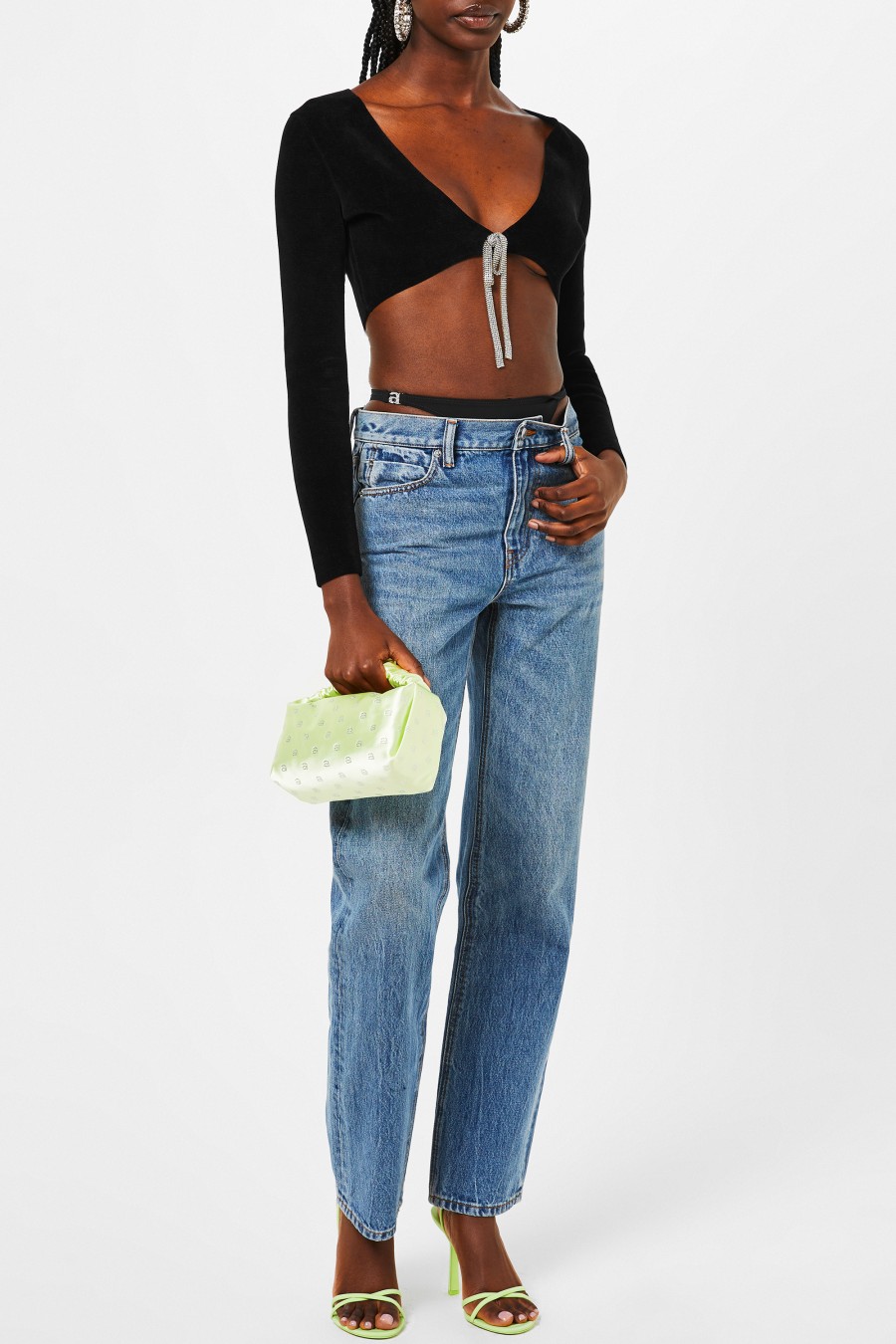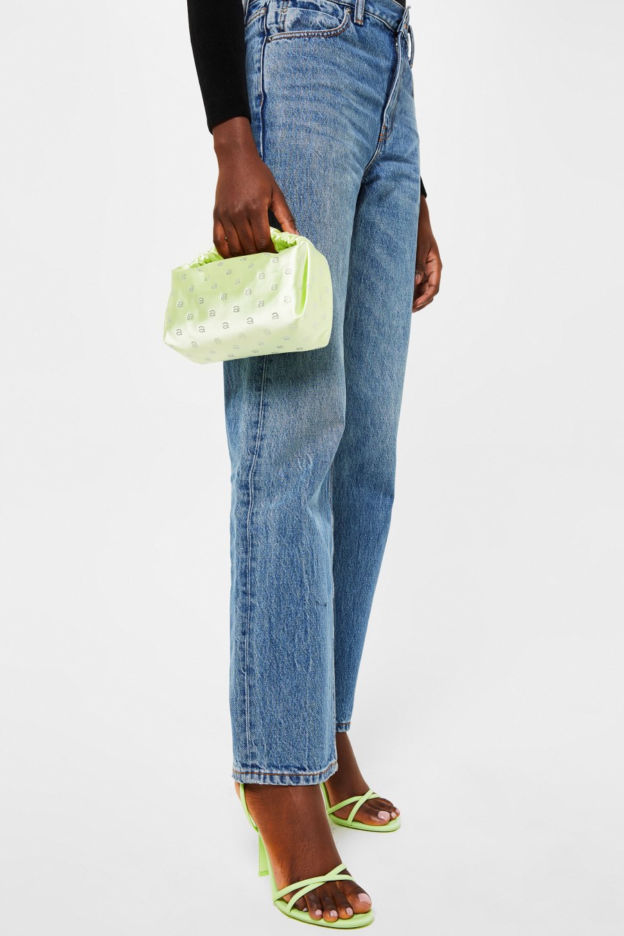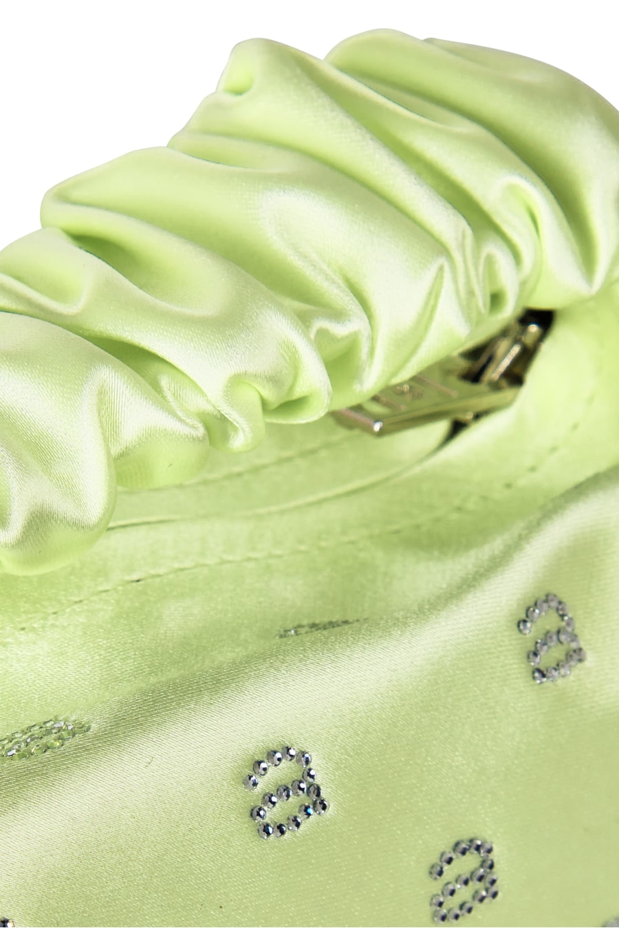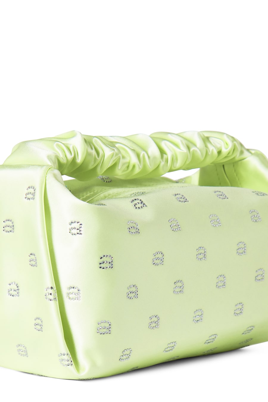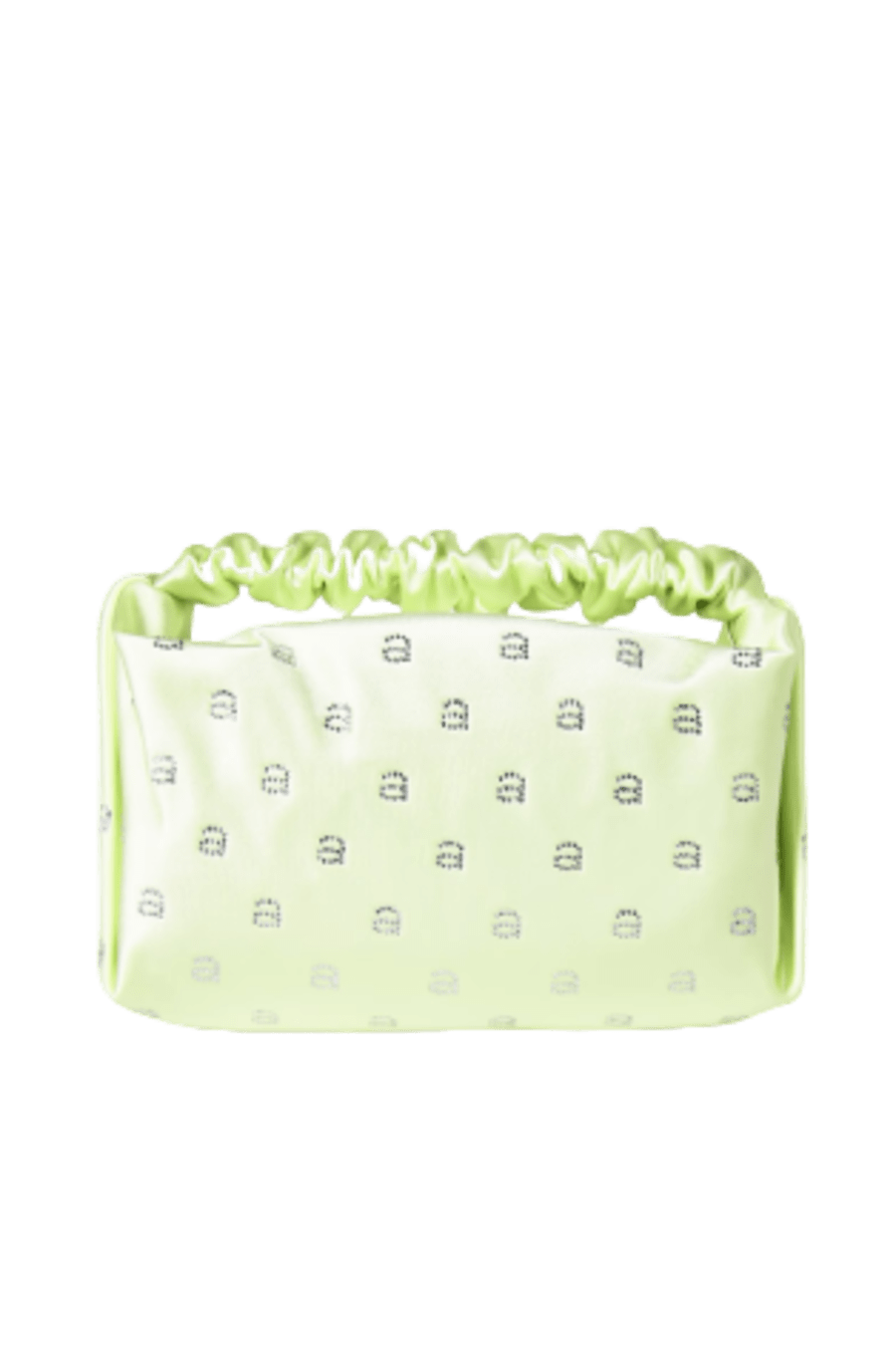 The Scrunchie Mini Bag by alexander Wang is the perfect addition for your collection. Designed in a core satin colourway, this bag is made in a small silhouette with a scrunchie-inspired top handle. Crafted with a silver zip fastening with one main compartment, this style is finished with embellished crystal A's to add a touch of glamour and designer to the piece. Match with your favourite LBD and silver jewellery for a bold finishing touch to your evening attire. Dimensions: W 23cm X H 14cm.