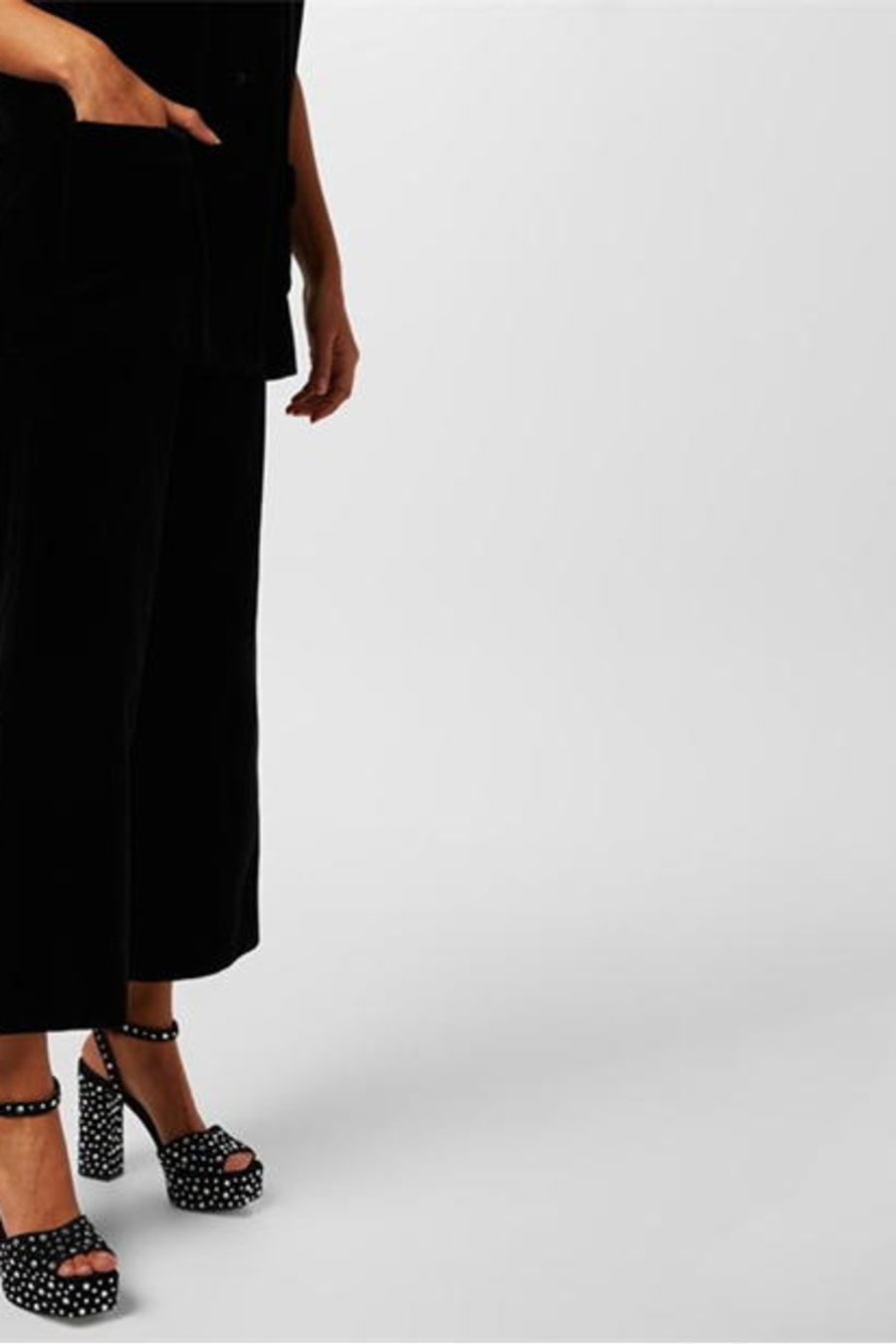 Crafted from jet black cotton velvet, The Toto Suit Trousers have a refined elegance with a wide leg, ankle cropped silhouette. Tailored to accentuate the natural waist with a flat fronted waistband, elasticated at back for ease of fit and wear. Unlined. Length measures 95 cm from waistband edge to hem, or 66 cm at the inner seam. Designed as an ensemble, to be worn with The Toto Suit Top.