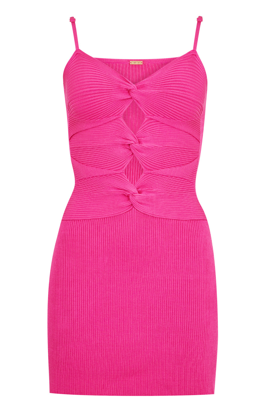 Elevate your evening dress selection with the Zenda Knit Dress by Cult Gaia. Featuring a stretchy knit construction with adjustable thin shoulder straps that ensures a comfortable fit. Twist detail to the chest along with a ribbed pattern and solid colouring gives a stylish, statement look, completed with the Cult Gaia branding for instant designer appeal.